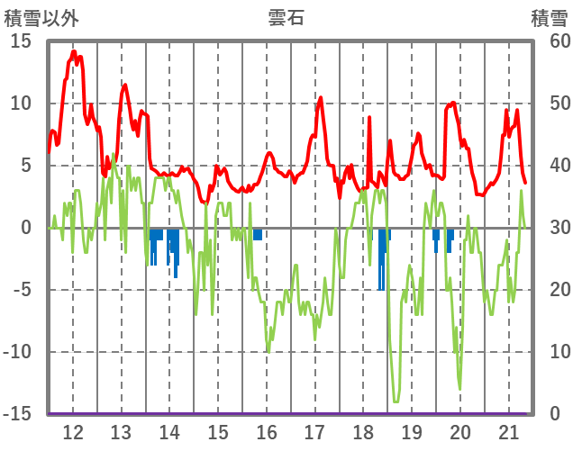 | 日 | 時 | 気温 | 降水 | 風向/風速 | 日照 | 積雪 | 降雪 |