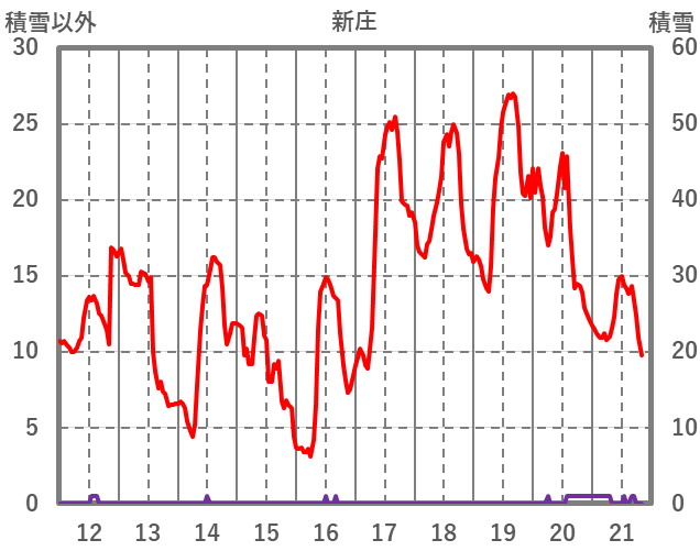 | 日 | 時 | 気温 | 降水 | 風向/風速 | 日照 | 積雪 | 降雪 |