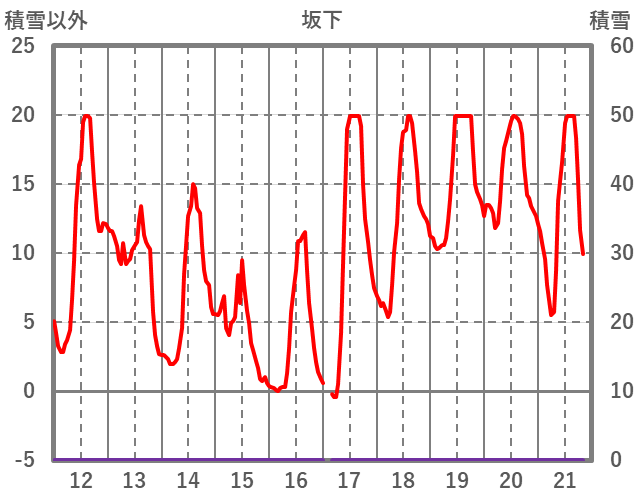 | 日 | 時 | 気温 | 降水 | 風向/風速 | 日照 | 積雪 | 降雪 |
