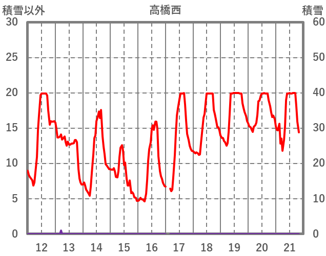 | 日 | 時 | 気温 | 降水 | 風向/風速 | 日照 | 積雪 | 降雪 |