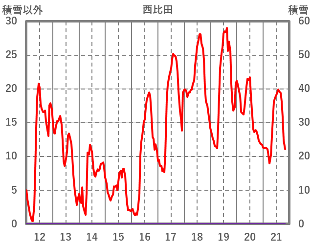 | 日 | 時 | 気温 | 降水 | 風向/風速 | 日照 | 積雪 | 降雪 |