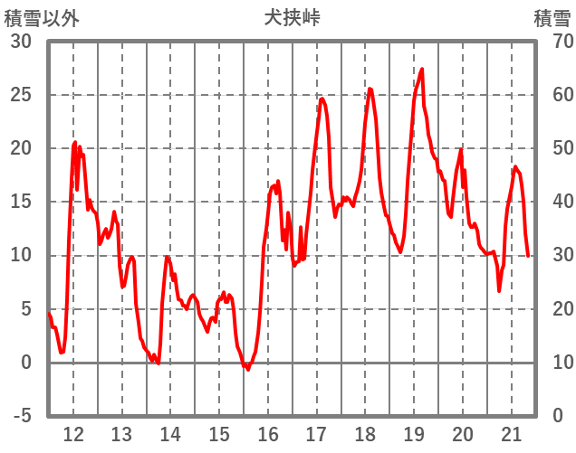 | 日 | 時 | 気温 | 降水 | 風向/風速 | 日照 | 積雪 | 降雪 |