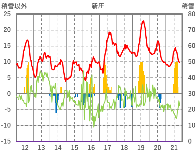 | 日 | 時 | 気温 | 降水 | 風向/風速 | 日照 | 積雪 | 降雪 |