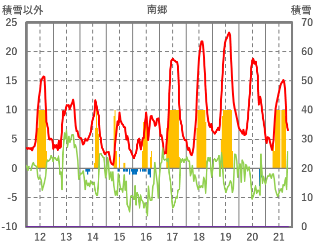 | 日 | 時 | 気温 | 降水 | 風向/風速 | 日照 | 積雪 | 降雪 |