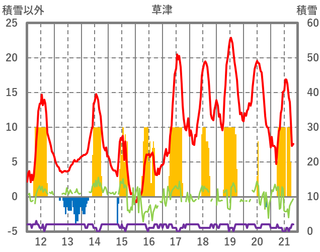 | 日 | 時 | 気温 | 降水 | 風向/風速 | 日照 | 積雪 | 降雪 |