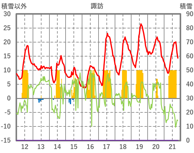 | 日 | 時 | 気温 | 降水 | 風向/風速 | 日照 | 積雪 | 降雪 |