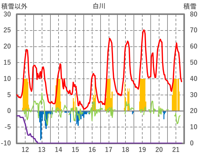 | 日 | 時 | 気温 | 降水 | 風向/風速 | 日照 | 積雪 | 降雪 |