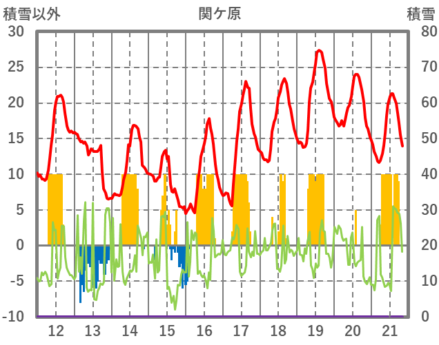 | 日 | 時 | 気温 | 降水 | 風向/風速 | 日照 | 積雪 | 降雪 |