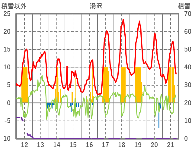 | 日 | 時 | 気温 | 降水 | 風向/風速 | 日照 | 積雪 | 降雪 |