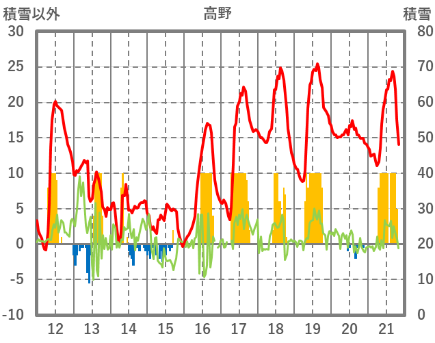 | 日 | 時 | 気温 | 降水 | 風向/風速 | 日照 | 積雪 | 降雪 |