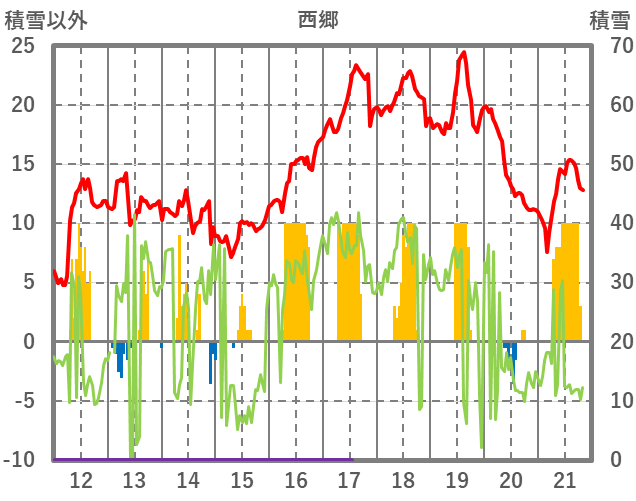 | 日 | 時 | 気温 | 降水 | 風向/風速 | 日照 | 積雪 | 降雪 |