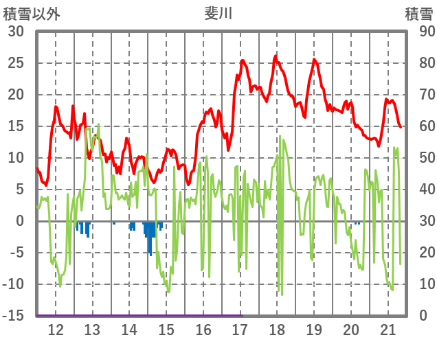 | 日 | 時 | 気温 | 降水 | 風向/風速 | 日照 | 積雪 | 降雪 |