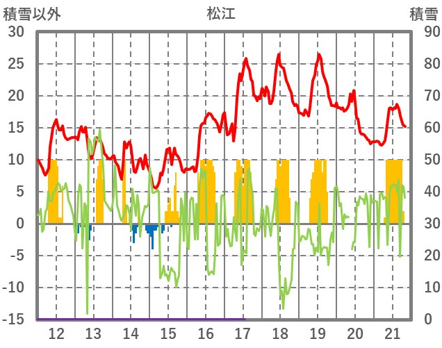 | 日 | 時 | 気温 | 降水 | 風向/風速 | 日照 | 積雪 | 降雪 |