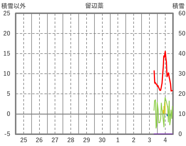 | 日 | 時 | 気温 | 降水 | 風向/風速 | 日照 | 積雪 | 降雪 |