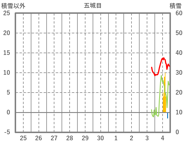 | 日 | 時 | 気温 | 降水 | 風向/風速 | 日照 | 積雪 | 降雪 |