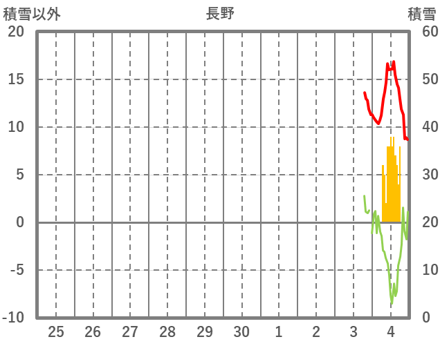 | 日 | 時 | 気温 | 降水 | 風向/風速 | 日照 | 積雪 | 降雪 |
