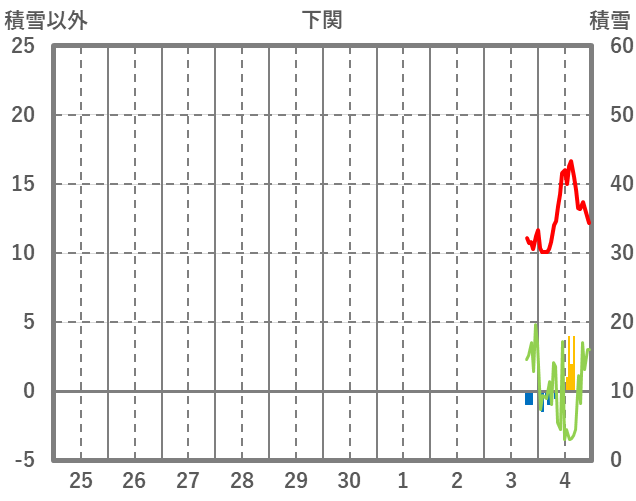 | 日 | 時 | 気温 | 降水 | 風向/風速 | 日照 | 積雪 | 降雪 |