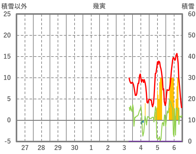 | 日 | 時 | 気温 | 降水 | 風向/風速 | 日照 | 積雪 | 降雪 |