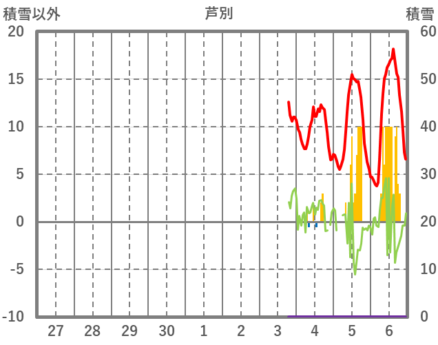 | 日 | 時 | 気温 | 降水 | 風向/風速 | 日照 | 積雪 | 降雪 |