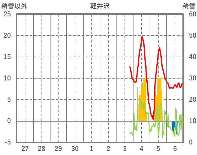 | 日 | 時 | 気温 | 降水 | 風向/風速 | 日照 | 積雪 | 降雪 |