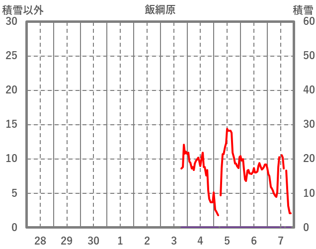 | 日 | 時 | 気温 | 降水 | 風向/風速 | 日照 | 積雪 | 降雪 |