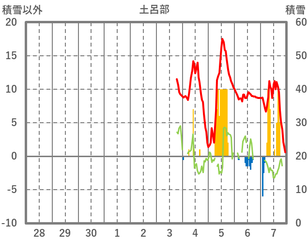 | 日 | 時 | 気温 | 降水 | 風向/風速 | 日照 | 積雪 | 降雪 |