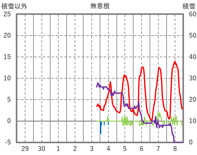 | 日 | 時 | 気温 | 降水 | 風向/風速 | 日照 | 積雪 | 降雪 |