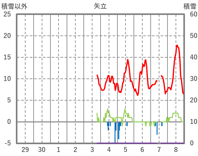 | 日 | 時 | 気温 | 降水 | 風向/風速 | 日照 | 積雪 | 降雪 |