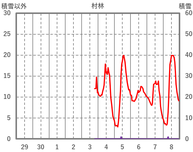 | 日 | 時 | 気温 | 降水 | 風向/風速 | 日照 | 積雪 | 降雪 |