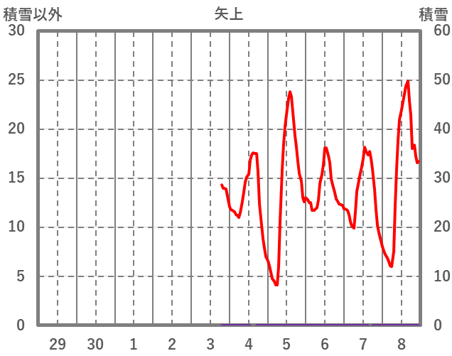 | 日 | 時 | 気温 | 降水 | 風向/風速 | 日照 | 積雪 | 降雪 |