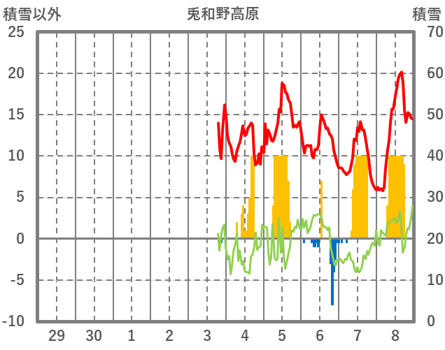 | 日 | 時 | 気温 | 降水 | 風向/風速 | 日照 | 積雪 | 降雪 |