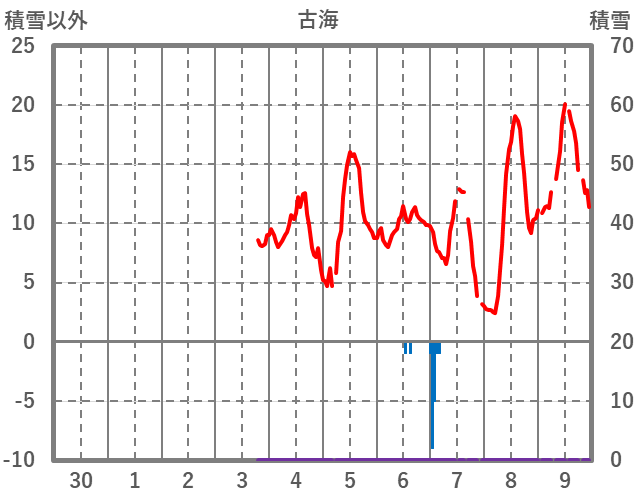 | 日 | 時 | 気温 | 降水 | 風向/風速 | 日照 | 積雪 | 降雪 |