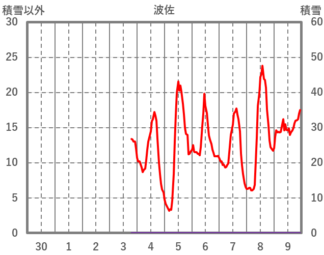| 日 | 時 | 気温 | 降水 | 風向/風速 | 日照 | 積雪 | 降雪 |