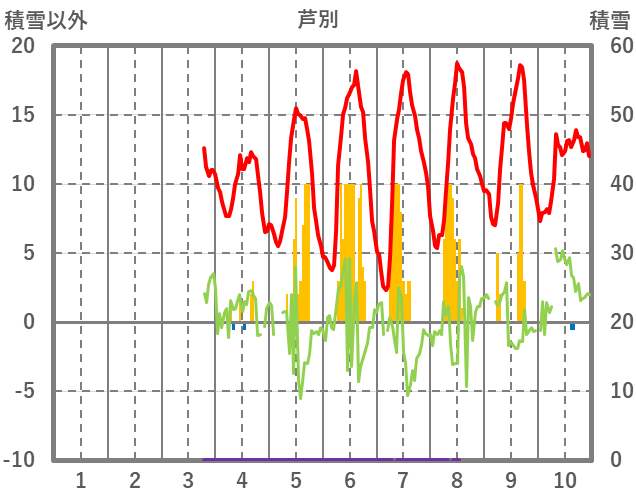 | 日 | 時 | 気温 | 降水 | 風向/風速 | 日照 | 積雪 | 降雪 |