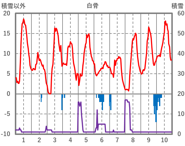 | 日 | 時 | 気温 | 降水 | 風向/風速 | 日照 | 積雪 | 降雪 |