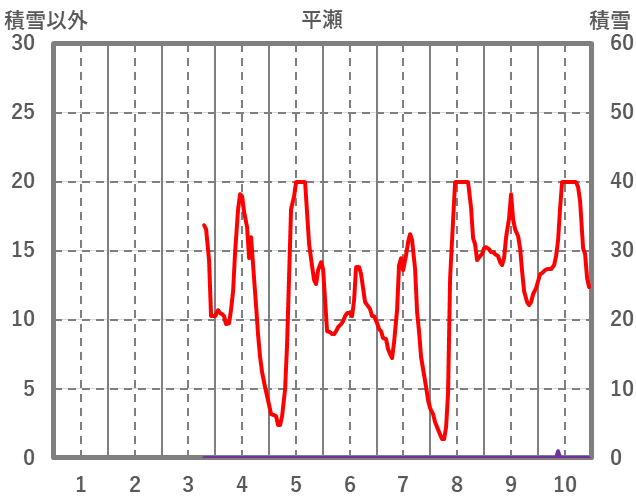 | 日 | 時 | 気温 | 降水 | 風向/風速 | 日照 | 積雪 | 降雪 |