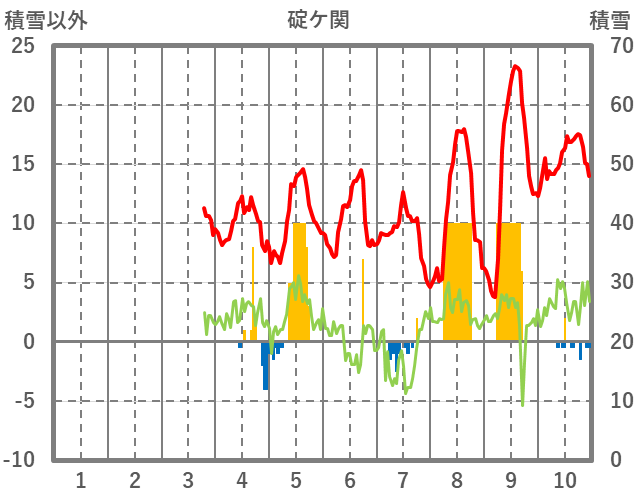 | 日 | 時 | 気温 | 降水 | 風向/風速 | 日照 | 積雪 | 降雪 |
