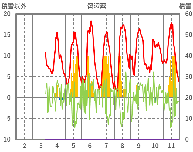 | 日 | 時 | 気温 | 降水 | 風向/風速 | 日照 | 積雪 | 降雪 |