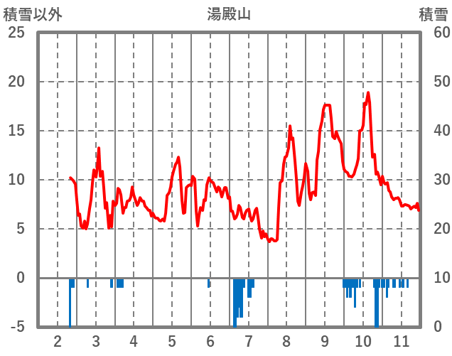 | 日 | 時 | 気温 | 降水 | 風向/風速 | 日照 | 積雪 | 降雪 |
