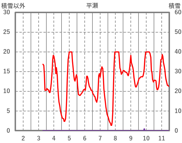 | 日 | 時 | 気温 | 降水 | 風向/風速 | 日照 | 積雪 | 降雪 |