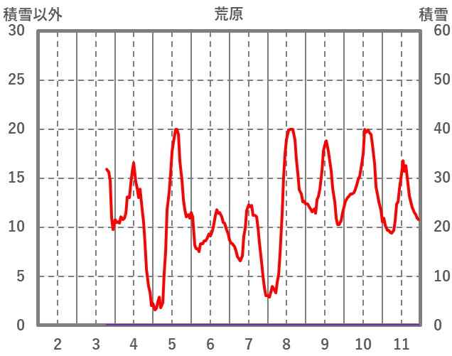 | 日 | 時 | 気温 | 降水 | 風向/風速 | 日照 | 積雪 | 降雪 |