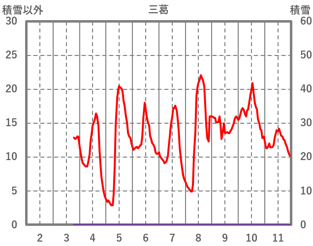 | 日 | 時 | 気温 | 降水 | 風向/風速 | 日照 | 積雪 | 降雪 |