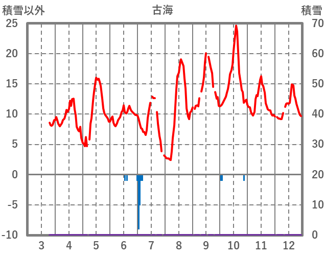 | 日 | 時 | 気温 | 降水 | 風向/風速 | 日照 | 積雪 | 降雪 |