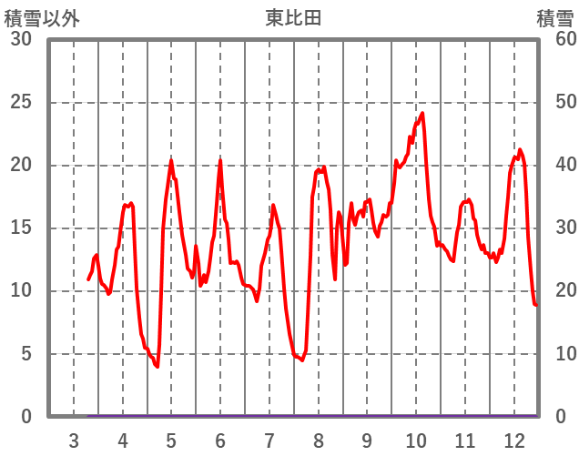 | 日 | 時 | 気温 | 降水 | 風向/風速 | 日照 | 積雪 | 降雪 |