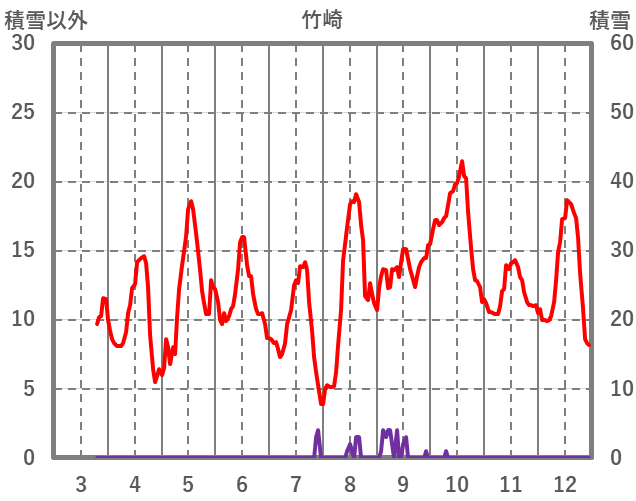 | 日 | 時 | 気温 | 降水 | 風向/風速 | 日照 | 積雪 | 降雪 |