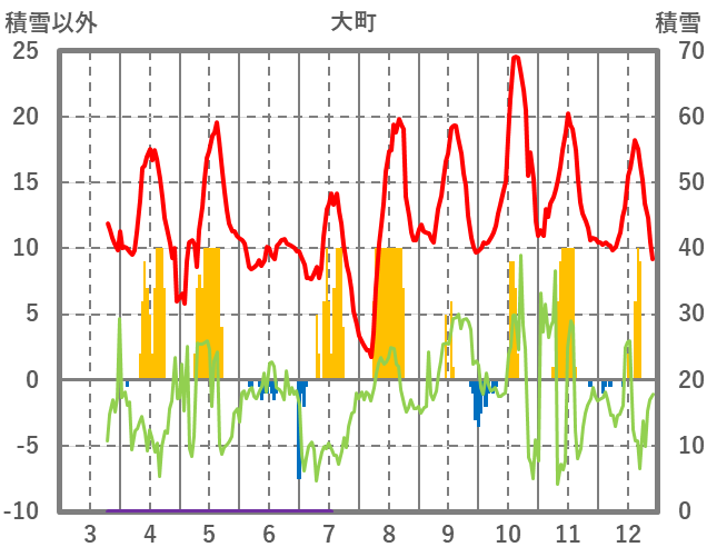 | 日 | 時 | 気温 | 降水 | 風向/風速 | 日照 | 積雪 | 降雪 |