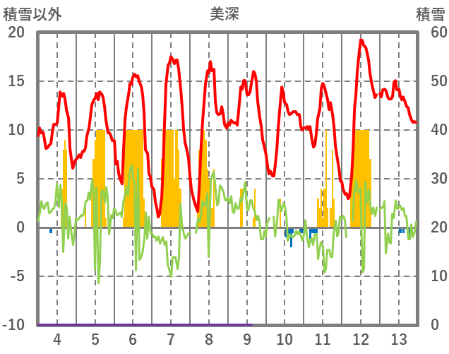 | 日 | 時 | 気温 | 降水 | 風向/風速 | 日照 | 積雪 | 降雪 |