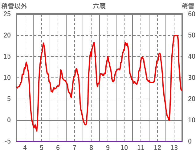 | 日 | 時 | 気温 | 降水 | 風向/風速 | 日照 | 積雪 | 降雪 |