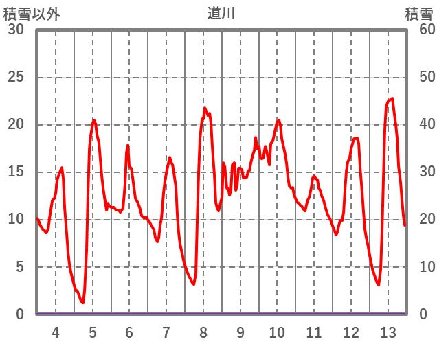 | 日 | 時 | 気温 | 降水 | 風向/風速 | 日照 | 積雪 | 降雪 |