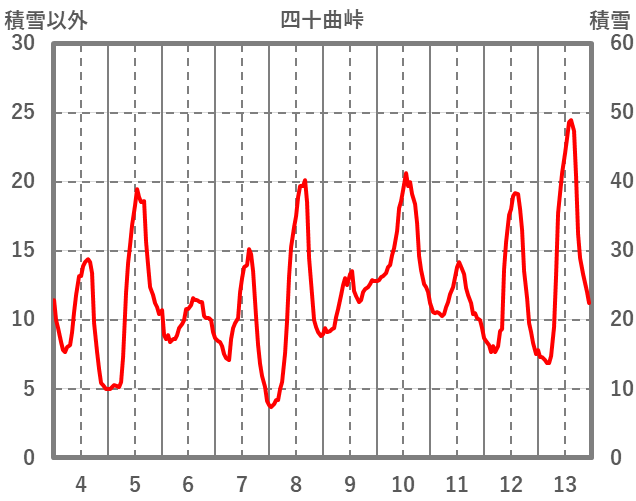 | 日 | 時 | 気温 | 降水 | 風向/風速 | 日照 | 積雪 | 降雪 |